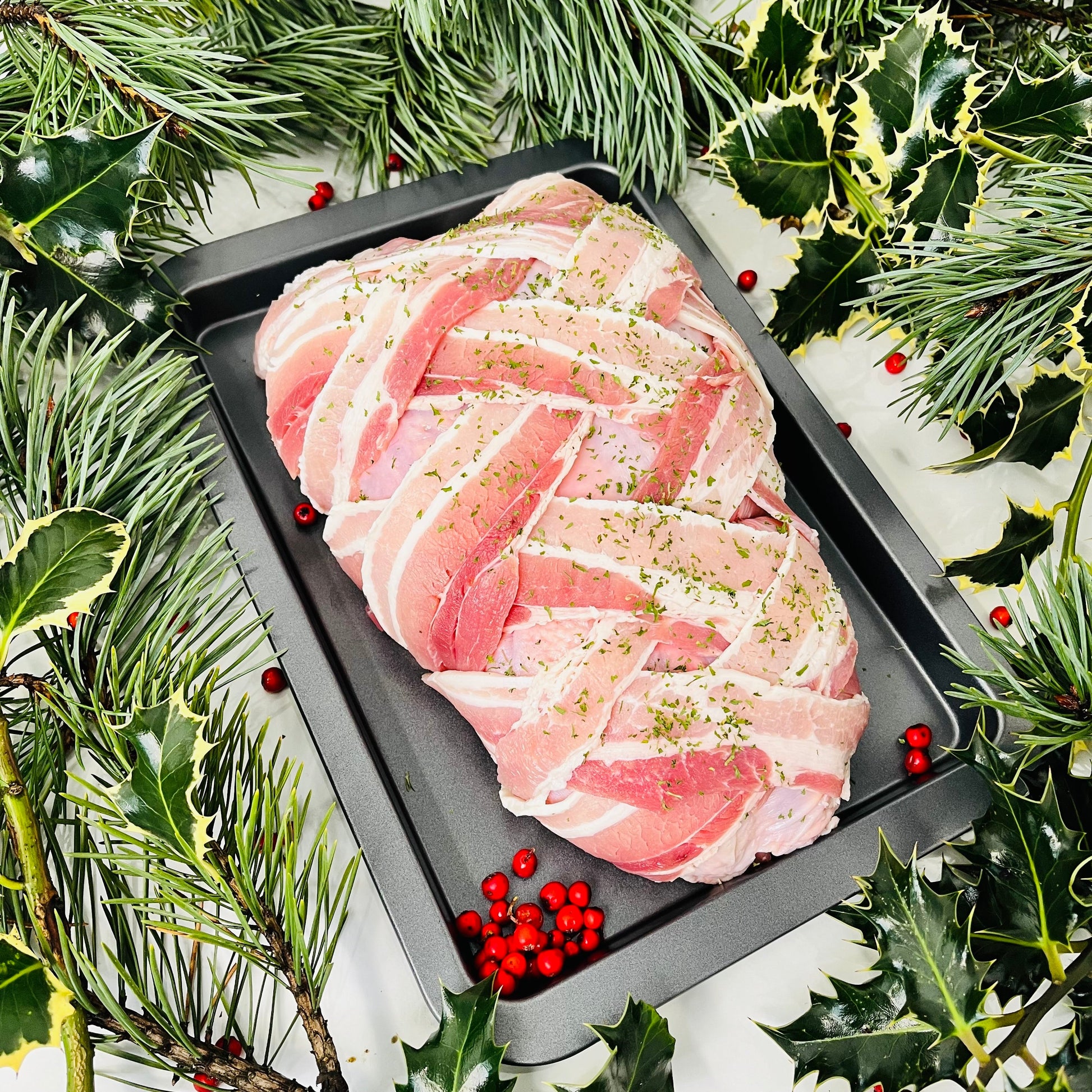 Fresh English Boneless Turkey Crown wrapped in Streaky Bacon -2.5kg - Feeds 10 people