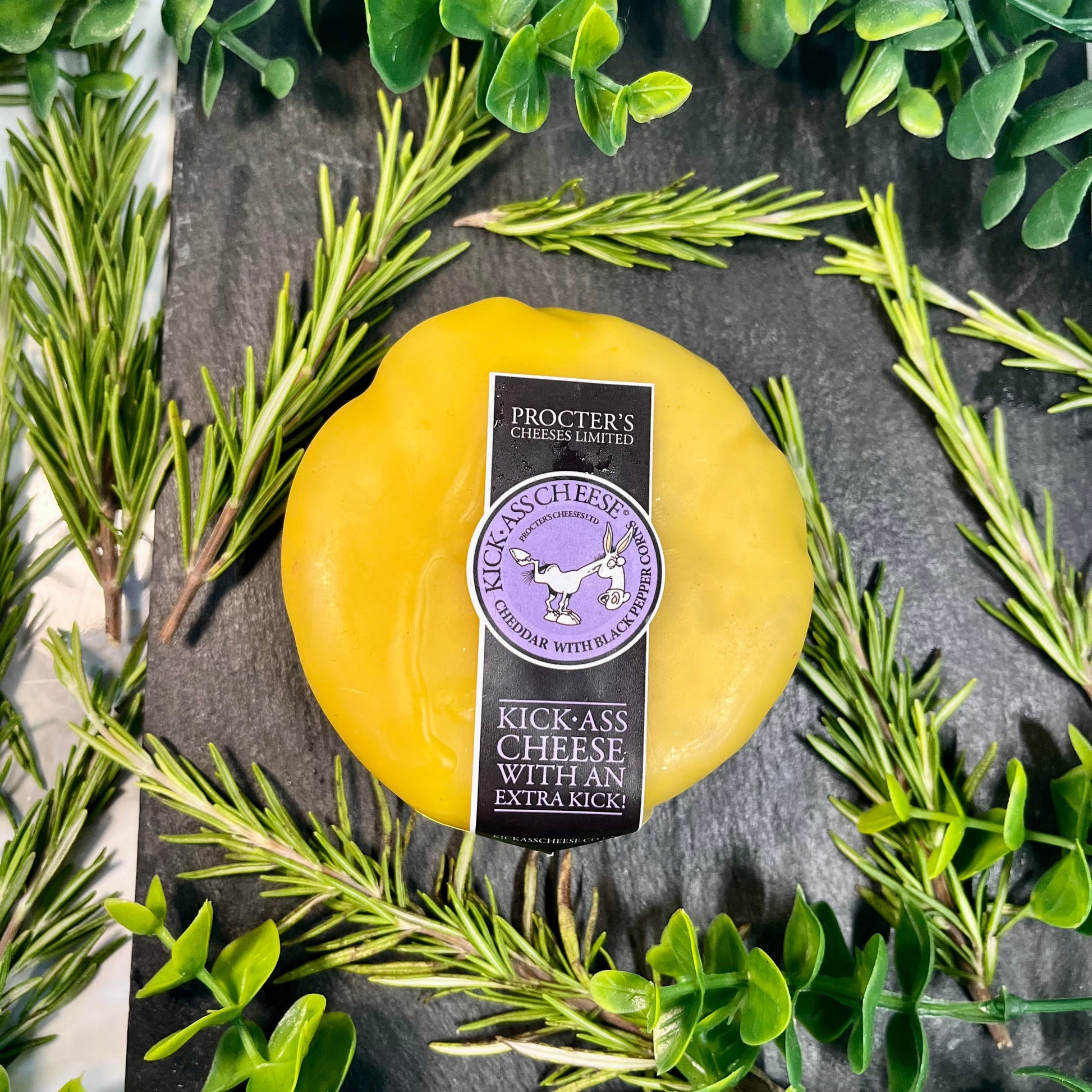 A bold, Extra Mature Cheddar infused with cracked black peppercorns delivers a "kick-ass" flavour—creamy and rich, yet defiantly peppery, designed to delight the adventurous palate