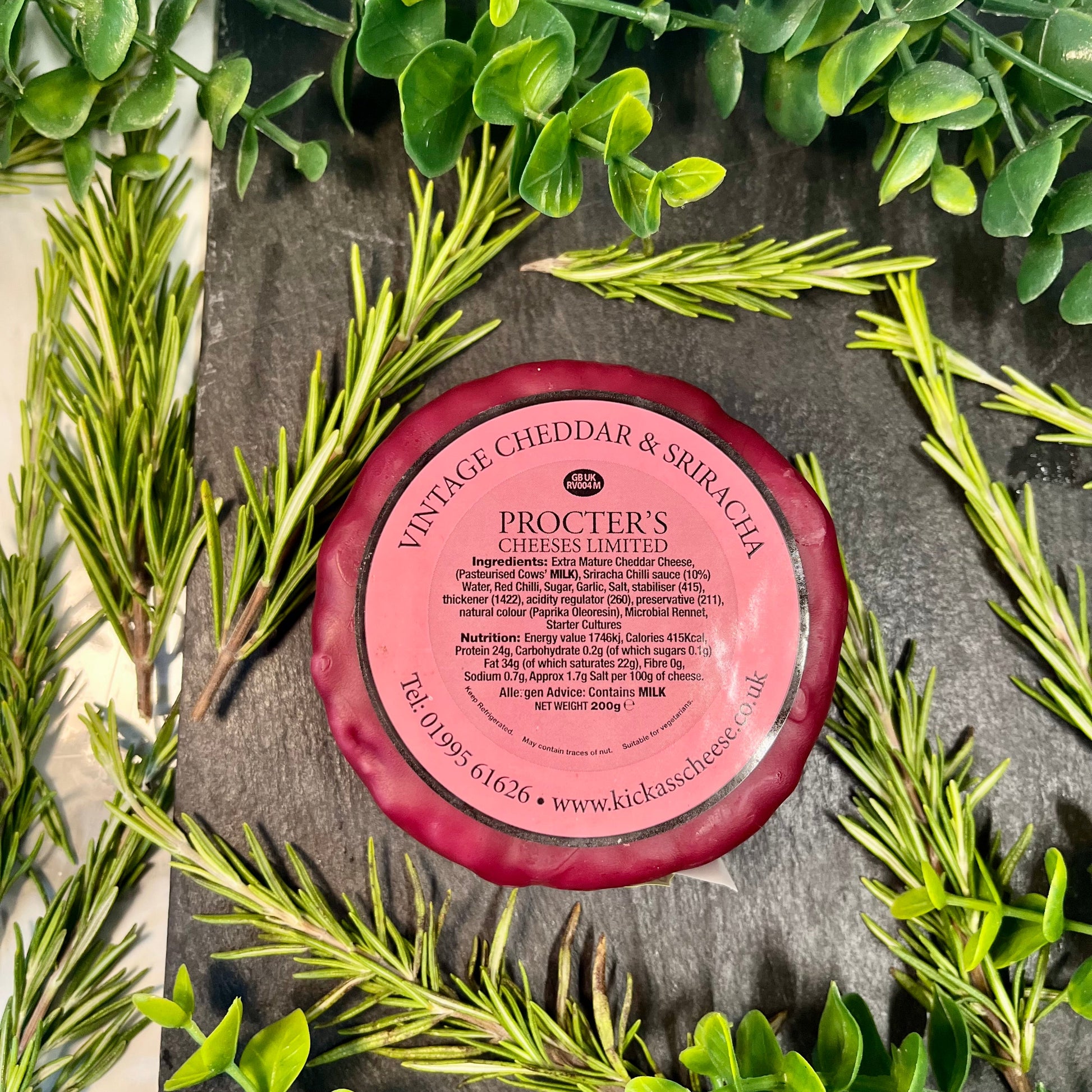 An Extra Mature Cheddar blended with HOT Sriracha sauce
