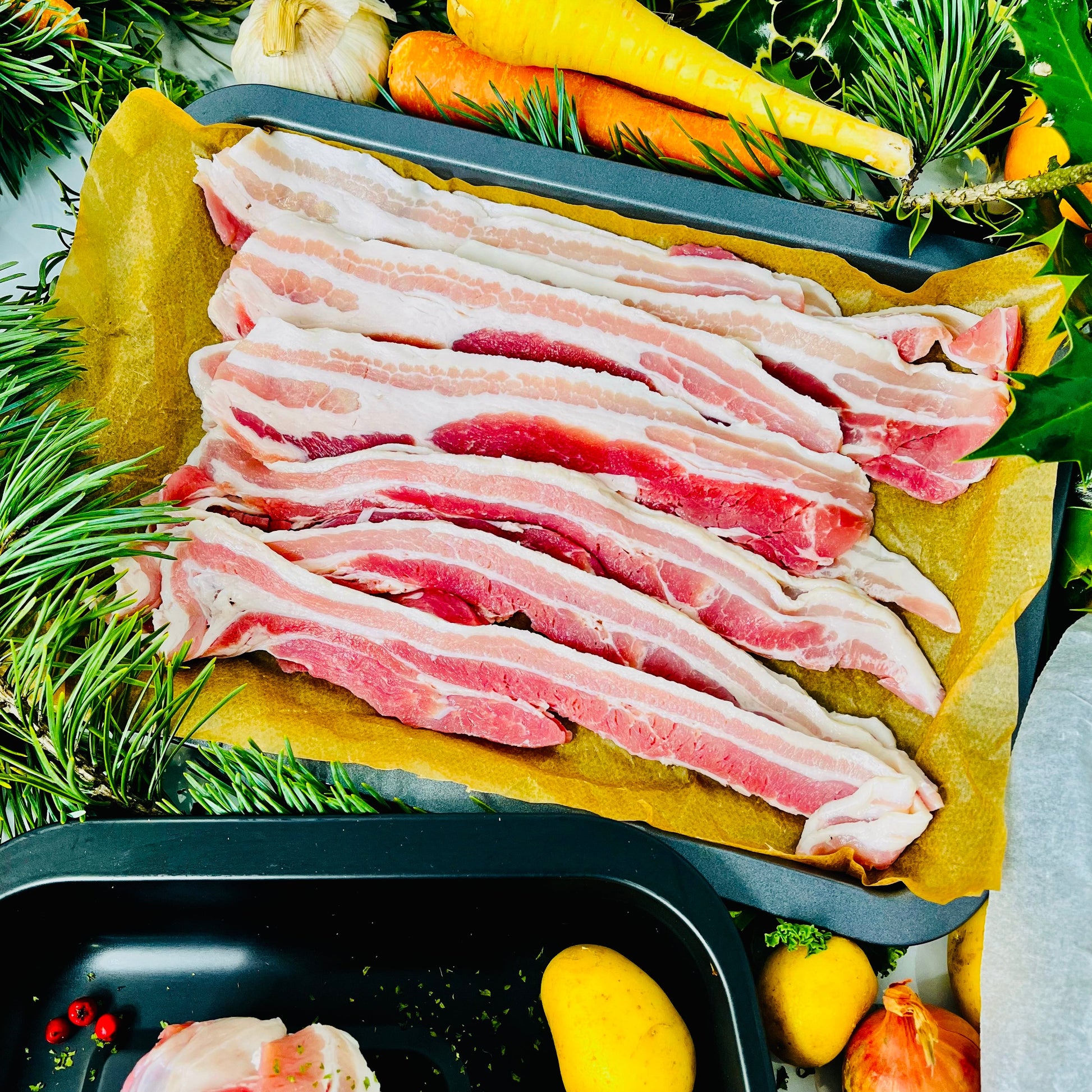 • πŸ₯“ Finest Streaky Bacon (perfect for topping your turkey!)